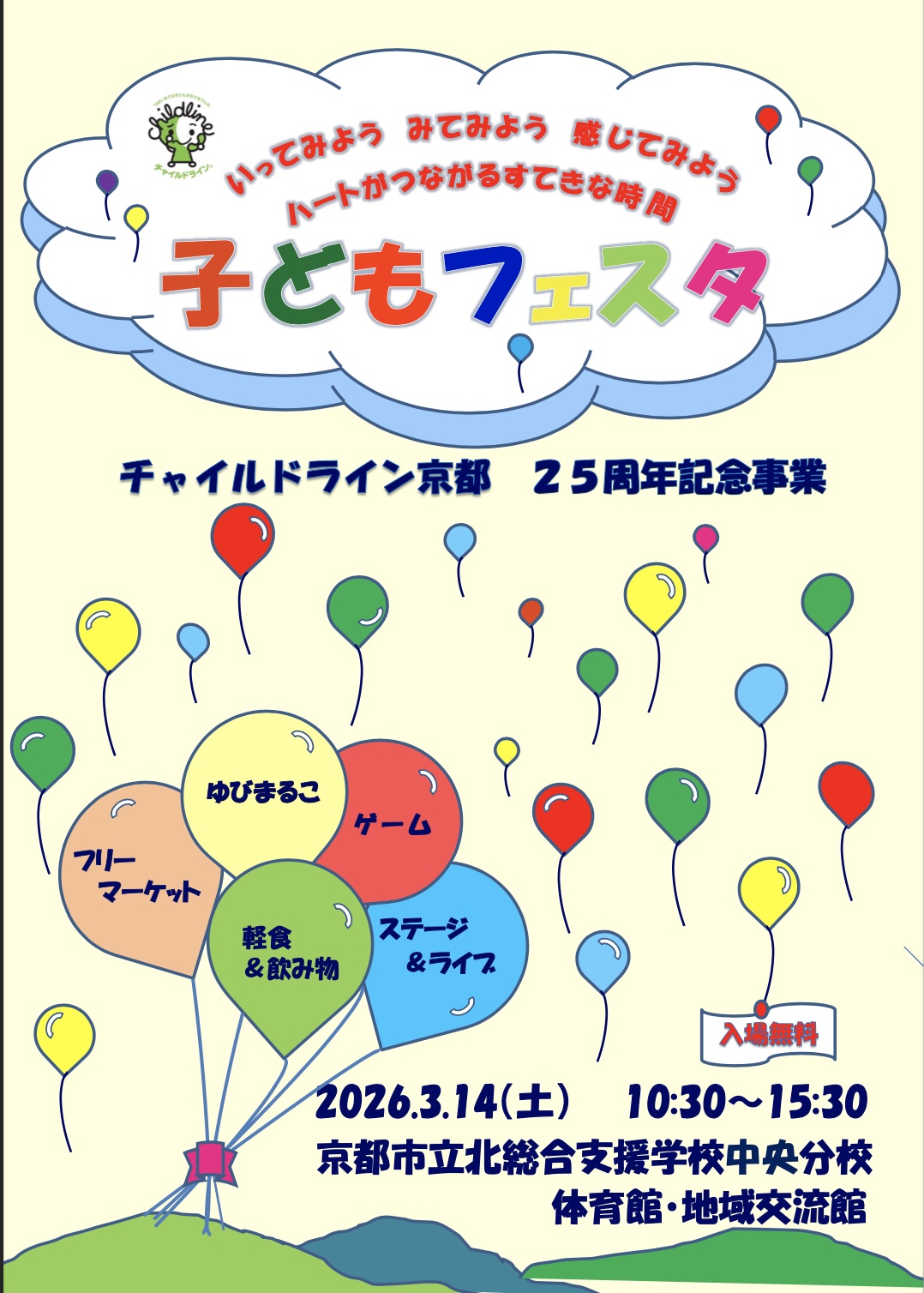 - 進捗状況・成果 2026年3月5日 【3/14(土)開催】チャイルドライン京都25周年記念事業 子どもフェスタ