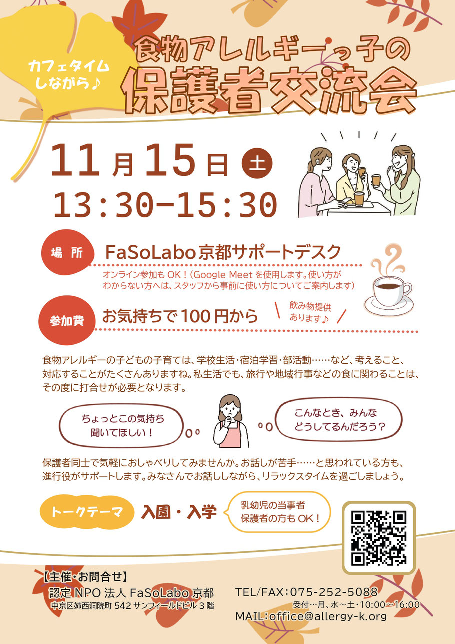 - 進捗状況・成果 2025年10月14日 【11/15(土)開催】 食物アレルギーっ子の保護者交流会