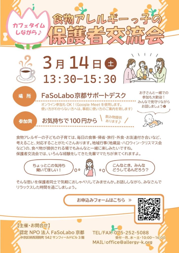 【3/14(土)開催】食物アレルギーっ子の保護者交流会
